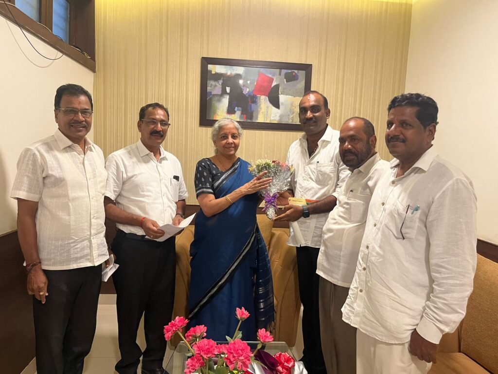 ಉಡುಪಿ : ಜಿಲ್ಲೆಗೆ ಆಗಮಿಸಿದ ಕೇಂದ್ರ ಹಣಕಾಸು ಮತ್ತು ಕಾರ್ಪೊರೇಟ್ ವ್ಯವಹಾರಗಳ ಸಚಿವರಾದ ನಿರ್ಮಲ ಸೀತಾರಾಮನ್ ರನ್ನು ಉಡುಪಿ ವಿಧಾನಸಭಾ ಕ್ಷೇತ್ರದ ಶಾಸಕರಾದ ಯಶ್ ಪಾಲ್ ಸುವರ್ಣ ನೇತೃತ್ವದಲ್ಲಿ ಮೀನುಗಾರರ ನಿಯೋಗ ಹಾಗೂ ನೇಕಾರರ ನಿಯೋಗ ಸಚಿವರನ್ನು ಭೇಟಿ ಮಾಡಿ ಮೀನುಗಾರಿಕೆ ಹಾಗೂ ನೇಕಾರರ ವಿವಿಧ ಬೇಡಿಕೆಗಳ ಬಗ್ಗೆ ಚರ್ಚಿಸಿ ಸಹಕಾರ ಕೋರಿದರು.