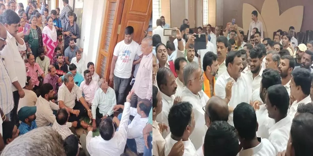 ಹಾಲಿ ಸಂಸದೆ ವಿರುದ್ಧ ಬಿಜೆಪಿ ಮುಖಂಡರು, ಕಾರ್ಯಕರ್ತರ ಅಸಮಾಧಾನ ರವಿವಾರ ಪಕ್ಷದ ಕಚೇರಿಯಲ್ಲೇ ಸ್ಪೋಟಗೊಂಡಿದ್ದು, ಪಕ್ಷದ ವರಿಷ್ಠರ ಸಮ್ಮುಖದಲ್ಲೇ ಶೋಭಾ ಕರಂದ್ಲಾಜೆಗೆ ಟಿಕೆಟ್ ನೀಡಬಾರದು ಎಂದು ಆಗ್ರಹಿಸಿ ಧರಣಿ ನಡೆಸಿದ ಘಟನೆ ನಡೆಯಿತು.