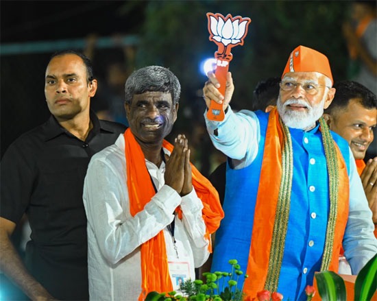 ಮಂಗಳೂರು : ಪ್ರಧಾನಿ ನರೇಂದ್ರ ಮೋದಿಯವರು ಎ.14ರಂದು ಮಂಗಳೂರಿಗೆ ಭೇಟಿ ನೀಡಿದ್ದು, ನಗರದಲ್ಲಿ ಭರ್ಜರಿ ರೋಡ್ ಶೋ ನಡೆಸಿದ್ದಾರೆ. ರಾತ್ರಿ ಸರಿ ಸುಮಾರು 7.45 ಕ್ಕೆ ಮಂಗಳೂರು ಆಗಮಿಸಿ ಪ್ರಧಾನಿ ನಾರಾಯಣ ಗುರು ವೃತ್ತದಲ್ಲಿ ನಾರಾಯಣಗುರುಗಳ ಪ್ರತಿಮೆಗೆ ಮಲಾರ್ಪಣೆ ಮಾಡಿ ಪುಷ್ಪ ನಮನ ಸಲ್ಲಿಸಿದ್ದಾರೆ. ಬಳಿಕ ದಕ್ಷಿಣ ಕನ್ನಡ ಲೋಕಸಭಾ ಅಭ್ಯರ್ಥಿ ಬ್ರಿಜೇಶ್ ಚೌಟ ಹಾಗೂ ಉಡುಪಿ ಅಭ್ಯರ್ಥಿ ಕೋಟ ಶ್ರೀನಿವಾಸ ಪೂಜಾರಿ ಅವರ ಜೊತೆ ರೋಡ್ ಶೋ ನಡೆಸಿದ್ದಾರೆ.