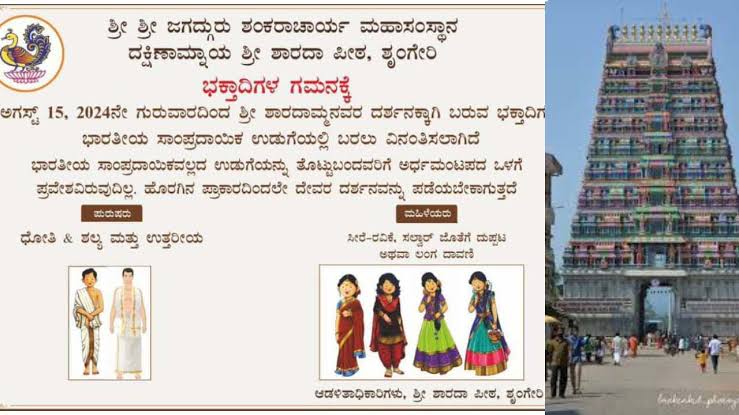 ಇದೆ ಮೊದಲ ಬಾರಿಗೆ ಶೃಂಗೇರಿ ಶಾರದಾ ಮಠದಿಂದ ವಸ್ತ್ರ ಸಂಹಿತೆ ಜಾರಿ ಮಾಡಿದೆ.