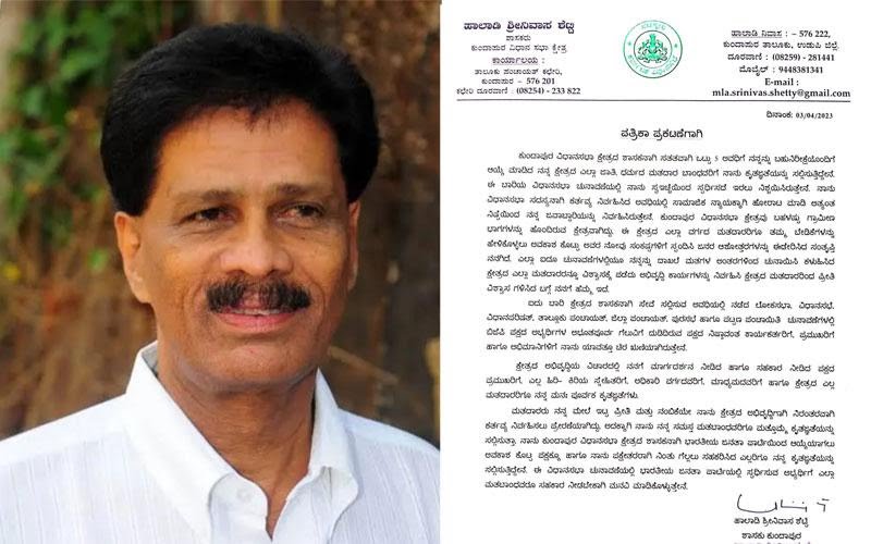 ಸೋಮವಾರ ಪತ್ರಿಕಾ ಹೇಳಿಕೆ ಬಿಡುಗಡೆ ಮಾಡಿರುವ ಶಾಸಕ ಹಾಲಾಡಿ ‘ಕುಂದಾಪುರ ವಿಧಾನಸಭಾ ಕ್ಷೇತ್ರದ ಶಾಸಕನಾಗಿ ಸತತ 5 ಅವಧಿಗೆ ಬಹು ನಿರೀಕ್ಷೆಯೊಂದಿಗೆ ಆಯ್ಕೆ ಮಾಡಿದ ಕ್ಷೇತ್ರದ ಎಲ್ಲ ಜಾತಿ, ಧರ್ಮದ ಮತದಾರ ಬಾಂಧವರಿಗೆ ಕೃತಜ್ಞತೆ ಸಲ್ಲಿಸುತ್ತೇನೆ. ಈ ಬಾರಿಯ ವಿಧಾನಸಭಾ ಚುನಾವಣೆಯಲ್ಲಿ ಸ್ವಇಚ್ಛೆಯಿಂದ ಸ್ಪರ್ಧಿಸದಿರಲು ನಿಶ್ಚಯಿಸಿದ್ದೇನೆ’ ಎಂದು ತಿಳಿಸಿದ್ದಾರೆ.