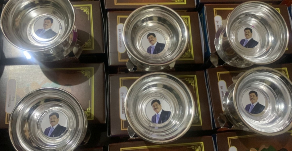 ಬೆಳ್ಳಿ ಹಣತೆಗಳ ತಳಭಾಗದಲ್ಲಿ ಸಚಿವ ಮುರುಗೇಶ್ ನಿರಾಣಿ ಭಾವಚಿತ್ರಗಳು ಇವೆ. ಮುರುಗೇಶ್ ನಿರಾಣಿ ಅವರು ಬೀಳಗಿ ವಿಧಾನಸಭಾ ಕ್ಷೇತ್ರದ ಬಿಜೆಪಿ ಅಭ್ಯರ್ಥಿ. ಒಟ್ಟು 10 ಬಾಕ್ಸ್ಗಳಲ್ಲಿ ಈ ಬೆಳ್ಳಿ ದೀಪಗಳನ್ನ ತುಂಬಿ ಇಡಲಾಗಿತ್ತು.