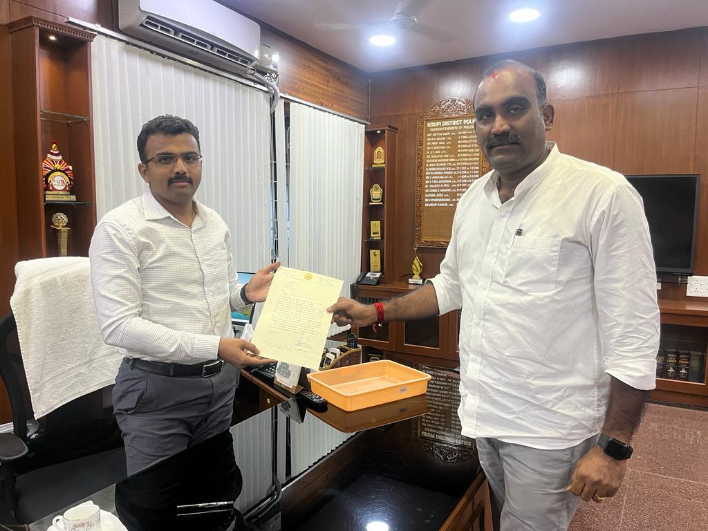 ಈ ಬಗ್ಗೆ ಈಗಾಗಲೇ ಗೃಹ ಸಚಿವರಾದ ಜಿ. ಪರಮೇಶ್ವರ್, ಜಿಲ್ಲಾ ಉಸ್ತುವಾರಿ ಸಚಿವರಾದ ಶ್ರೀಮತಿ ಲಕ್ಷ್ಮೀ ಹೆಬ್ಬಾಳ್ಕರ್ ರವರಿಗೆ ಮನವಿ ಸಲ್ಲಿಸಿದ್ದು ಪ್ರತಿಯನ್ನು ಜಿಲ್ಲಾ ಪೊಲೀಸ್ ವರಿಷ್ಠಾಧಿಕಾರಿಗಳಿಗೆ ಹಸ್ತಾಂತರಿಸಿದರು.