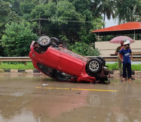 ಬೆಳಿಗ್ಗೆಯಿಂದ ಮಳೆ ಸುರಿಯುತ್ತಿದ್ದ ಪರಿಣಾಮ ಚಾಲಕನ ನಿಯಂತ್ರಣ ತಪ್ಪಿ ಕಾರು ಡಿವ್ಯೆಡರ್ ಗೆ ಢಿಕ್ಕಿ ಹೊಡೆದು ಪಲ್ಟಿಯಾಗಿದೆ ಎನ್ನಲಾಗಿದೆ.