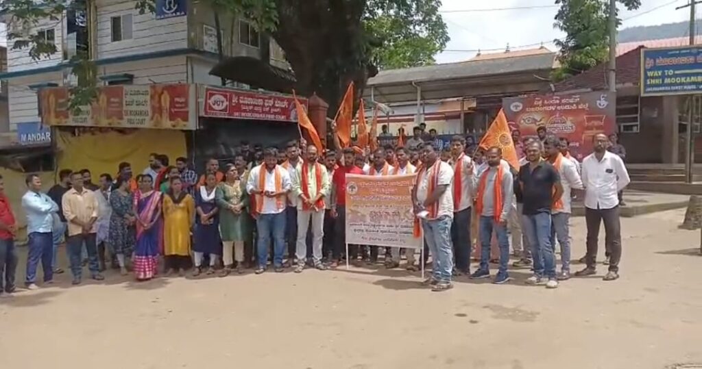 ಉಡುಪಿ : ಜಿಲ್ಲೆ ಬೈಂದೂರು ತಾಲೂಕಿನ ಬೆಳ್ಳಾಲ ಗ್ರಾಮದಲ್ಲಿ ವಿಶ್ವಹಿಂದೂ ಪರಿಷದ್ ಭಜರಂಗದಳ ಪ್ರತಿಭಟನೆ ಮಾಡಿದೆ.