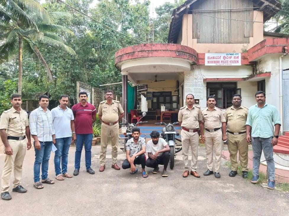 ಮೂಡುಬಿದಿರೆ ತಾಲೂಕಿನ ಇಡಾ ಕೋಟೆಬಾಗಿಲು ನಿವಾಸಿ ಸೈಯದ್ ಜಾಕೀರ್ (20) ಮತ್ತು ಕೋಟೆಬಾಗಿಲು ಗ್ರಾಮದ ದರ್ಗಾ ರಸ್ತೆ ನಿವಾಸಿ ಮೊಹಮ್ಮದ್ ಶಹೀಂ (24) ಸೆರೆಯಾಗಿರುವ ಕಳ್ಳರು.