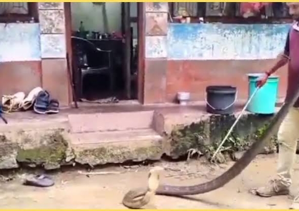 ಸ್ಥಳಕ್ಕೆ ಬಂದ ಉರಗ ರಕ್ಷಕ ಅಶೋಕ್ ಲಾಯಿಲ ಕಾಳಿಂಗ ಸರ್ಪವನ್ನು ಹಿಡಿದು ಸುರಕ್ಷಿತವಾಗಿ ಕಾಡಿಗೆ ಬಿಟ್ಟಿದ್ದಾರೆ.
