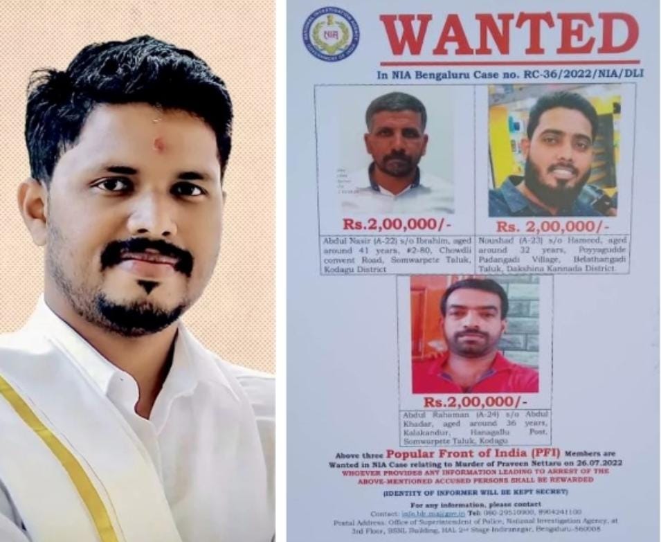 ಮಂಗಳೂರು, ಅ.27: ಬಿಜೆಪಿ ಯುವ ಮುಖಂಡ ಪ್ರವೀಣ್ ನೆಟ್ಟಾರು ಹತ್ಯೆ ಪ್ರಕರಣದಲ್ಲಿ ಭಾಗಿಯಾದ ಮೂವರು ಆರೋಪಿಗಳ ಮಾಹಿತಿ ನೀಡಿದವರಿಗೆ ಎನ್ಐಎ 2 ಲಕ್ಷ ರೂ. ಬಹುಮಾನ ನೀಡಲಾಗುವುದು
