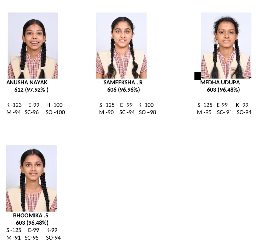 ಪಾಂಡುರಂಗ ರಮಣ ನಾಯಕ ಅಮೃತ ಭಾರತಿ ಸಮೂಹ ಶಿಕ್ಷಣ ಸಂಸ್ಥೆಯ ಅಮೃತ ಭಾರತಿ ವಿದ್ಯಾಲಯ ಆಂಗ್ಲ ಮಾಧ್ಯಮ ಹೈಸ್ಕೂಲ್ ವಿಭಾಗದ 10ನೇ ತರಗತಿಯ ಪಬ್ಲಿಕ್ ಪರೀಕ್ಷೆಯ ಫಲಿತಾಂಶದಲ್ಲಿ