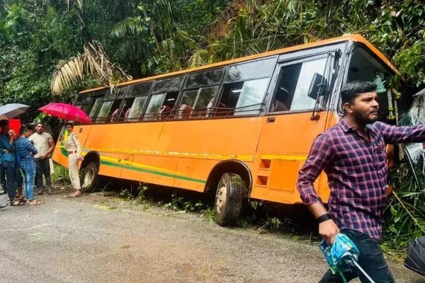 ಕುಂದಾಪುರ: ಖಾಸಗಿ ಬಸ್ಸೊಂದು ಚಾಲಕನ ನಿಯಂತ್ರಣ ತಪ್ಪಿ ಚರಂಡಿಗೆ ಉರುಳಿದ ಘಟನೆ ಕೊಲ್ಲೂರು ಸಮೀಪದ ನಾಗೋಡಿ ಘಾಟಿ ಬಳಿ ಸೋಮವಾರ ನಡೆದಿದೆ. ಈ ಘಟನೆಯಲ್ಲಿ 17 ವಿಧ್ಯಾರ್ಥಿಗಳು